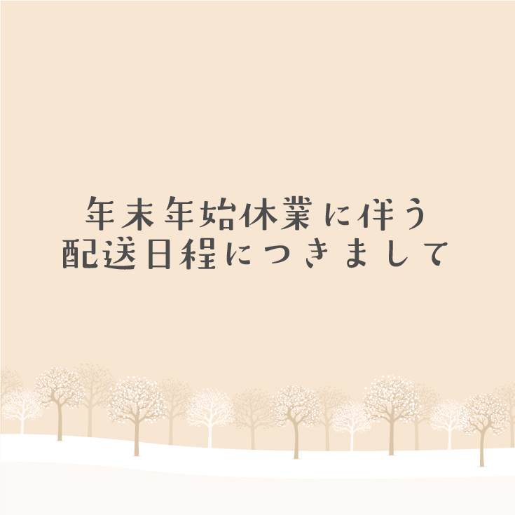 年末年始の配送を伴うご注文に関しまして、年末年始の休業に伴い、2026年1月 2日(金)〜1月8日(木)のお届け日指定を休止させていただきます